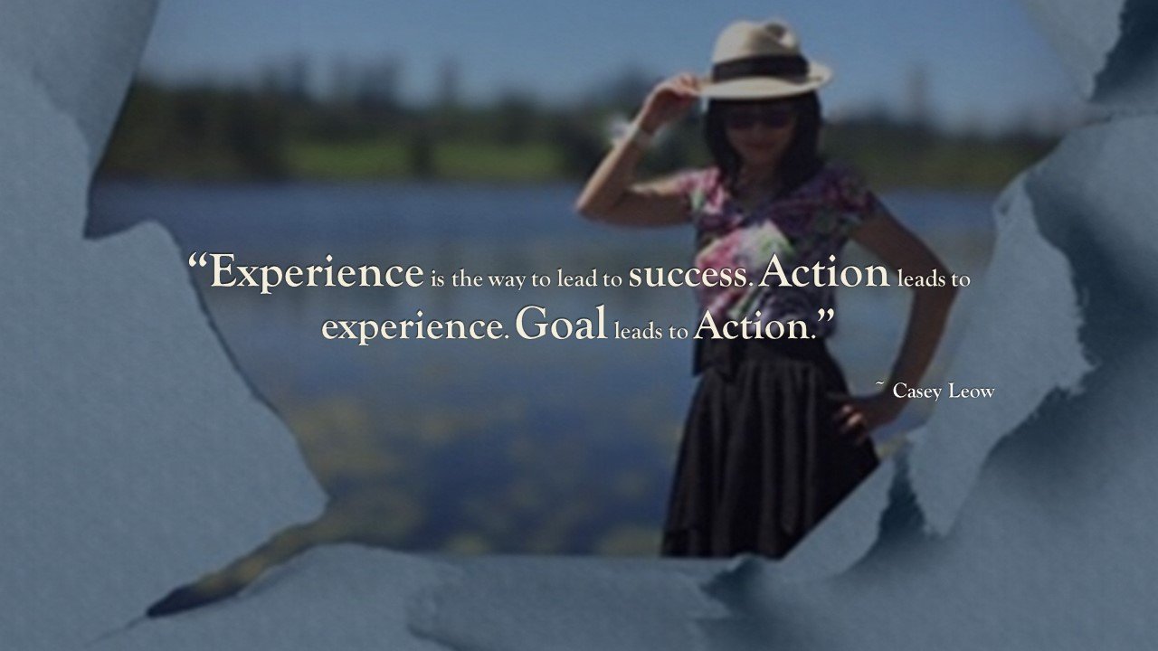 " Experience is the way to lead to Success. Action leads to Experience. Goal leads to Action.